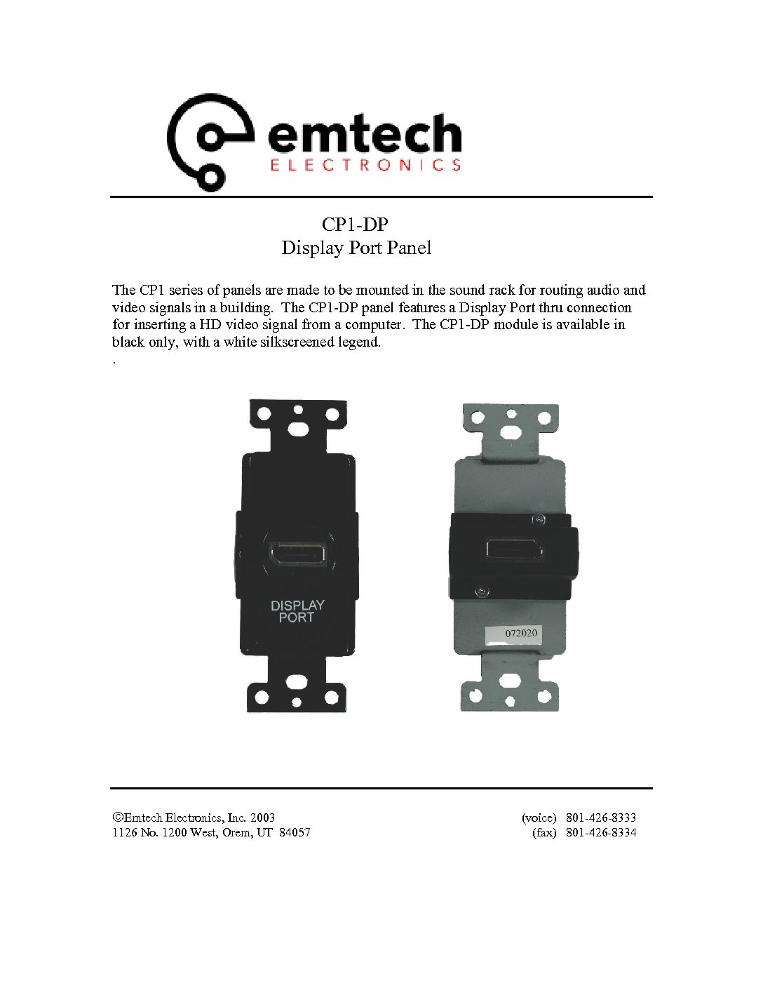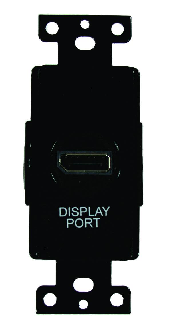 The CP1 series of panels are made to be mounted in the sound rack for routing audio and video signals in a building. The CP1-DP panel features a Display Port thru connection for inserting a HD video signal from a computer. The CP1-DP module is available in black only, with a white silkscreened legend.