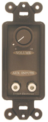 The MSC-W provides passive, transformer isolated RCA jacks for a unbalanced stereo line to mono balanced 600 ohm line interface in a Decora style panel. A user adjustable attenuation control is provided as well. The MSC-W is an easy way to provide a fixed location connection point for a DVD, VCR, CD or tape player. Connection on the sound system side of the balanced line interface is made using screw terminals. Panels are available in Ivory, White and Brown.