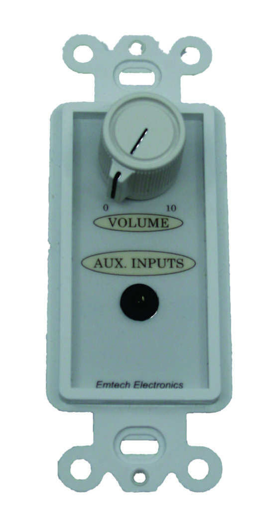 The MSC-W3 provides a passive, transformer isolated stereo 3.5mm jack for an unbalanced stereo line to mono balanced 600-ohm line interface in a Decora style panel. A user adjustable attenuation control is provided as well. The MSC-W3 is an easy way to provide a fixed location connection point for a DVD, VCR, CD or tape player. Connection on the sound system side of the balanced line interface is made using screw terminals. Panels are available in brown, ivory, or white.